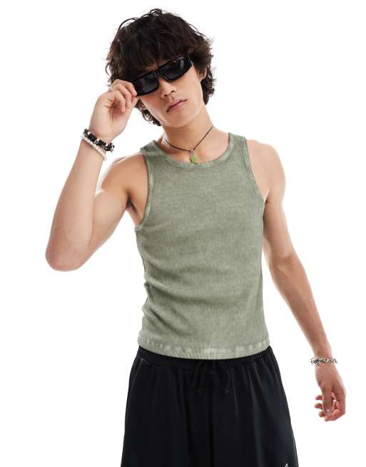 COLLUSION - Geribbeld muscle fit hemdje met oliewassing in groen