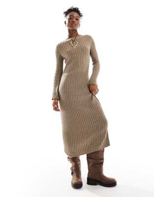 COLLUSION - Geribbelde gebreide maxi-jurk met rechte hals en textuur in stone