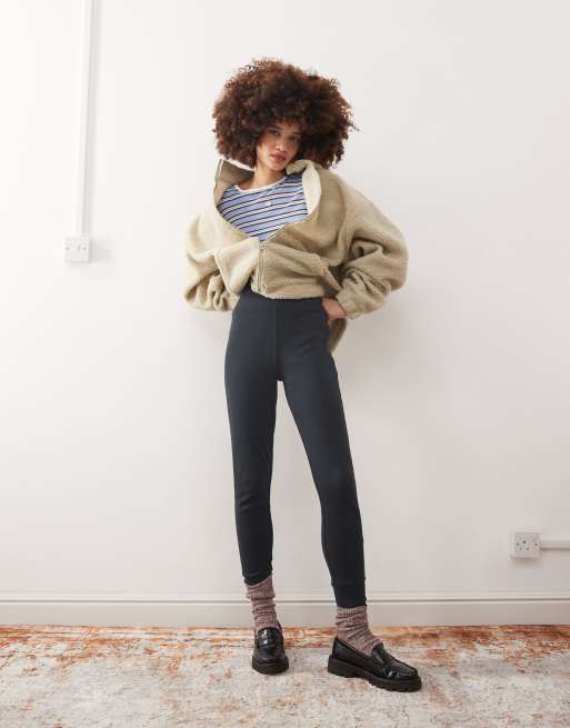 COLLUSION - Geribbelde legging van zware stof met brede boorden in donkergrijs