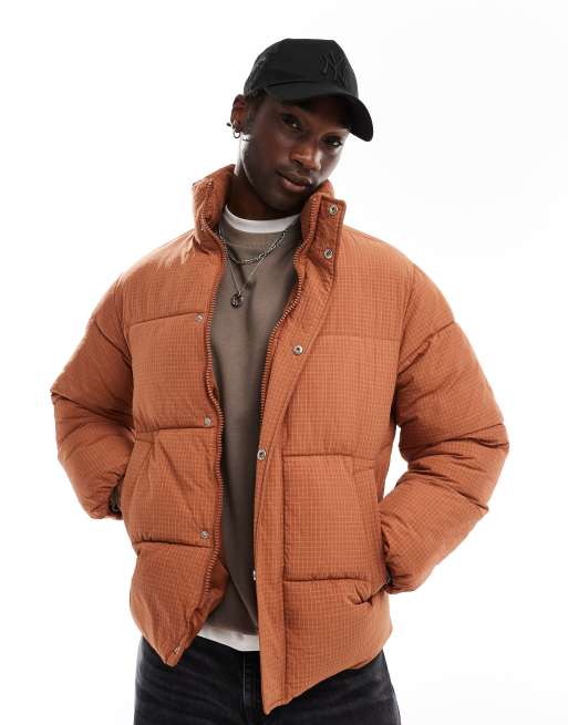 COLLUSION - Gewatteerd puffer jack van ripstop met opstaande boord in oranje