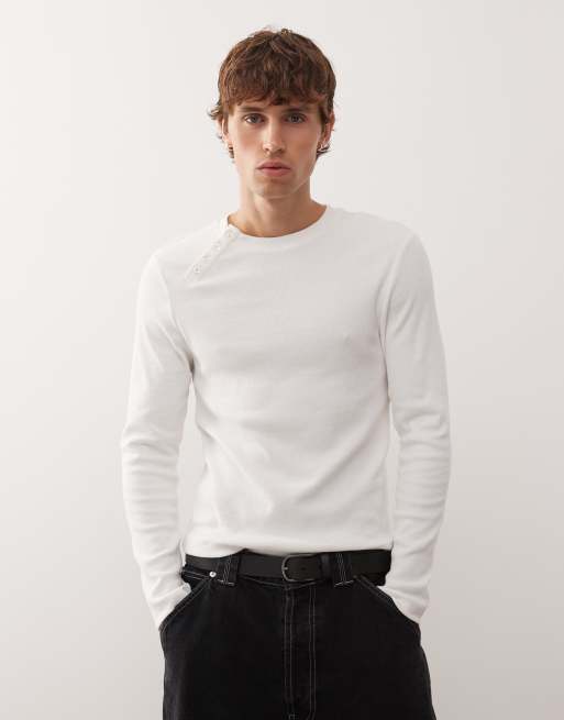 COLLUSION - Henley - T-shirt met lange mouwen en asymmetrische knoopjes in crème