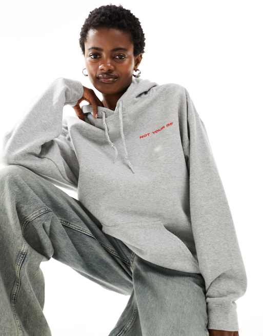COLLUSION - Hoodie met 'Not Your GF'-print in gemêleerd grijs