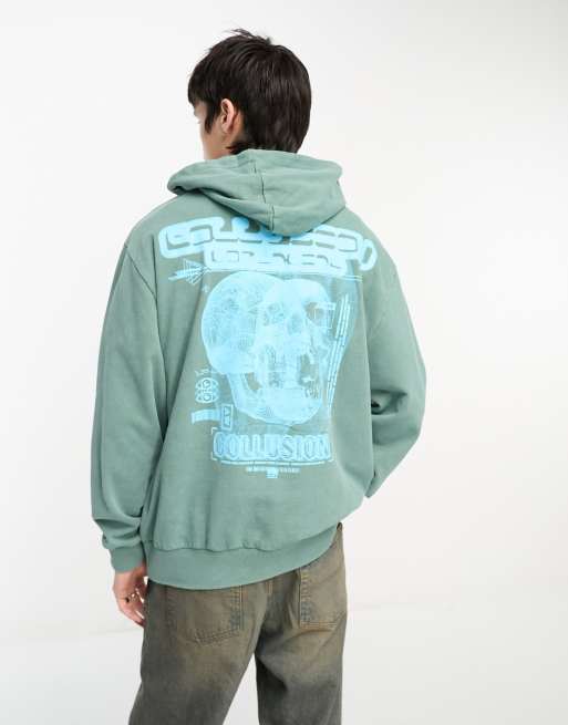 COLLUSION - Hoodie met schedelprint in verwassen donkergroen