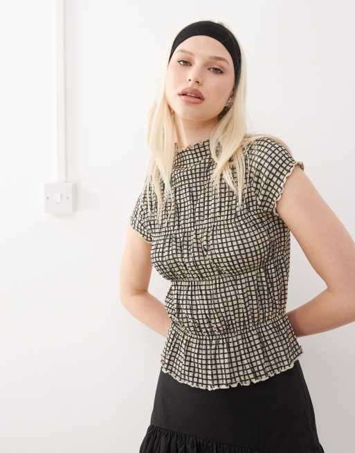 COLLUSION - Hoogsluitende gesmokte top in micro-ruitjes