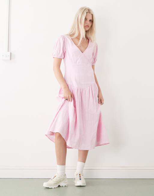 COLLUSION - Maxi jurk met verlaagde taille en pofmouwen in roze