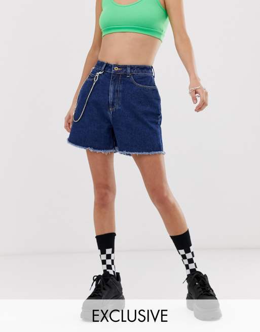 COLLUSION - Mom short in blauw met donkere stone wash