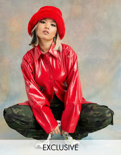 COLLUSION - Overhemd met cocoonmouwen in rood vinyl
