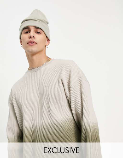 COLLUSION - Oversized geribbeld T-shirt met lange mouwen in kaki ombre