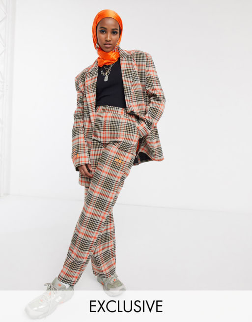 COLLUSION - Oversized geruite blazer en broek met wijde pijpen