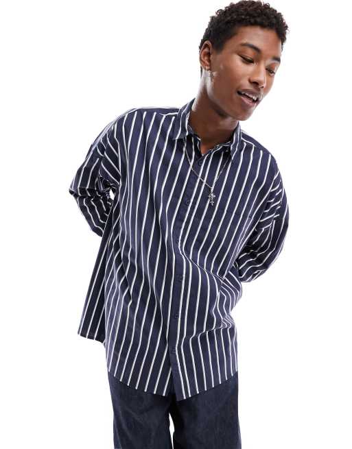 COLLUSION - Oversized gestreept overhemd in blauw