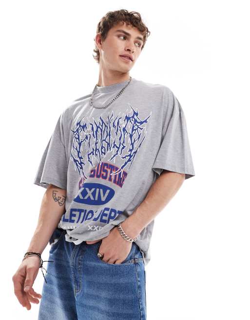 COLLUSION - Oversized T-shirt met atletische print in gemêleerd grijs