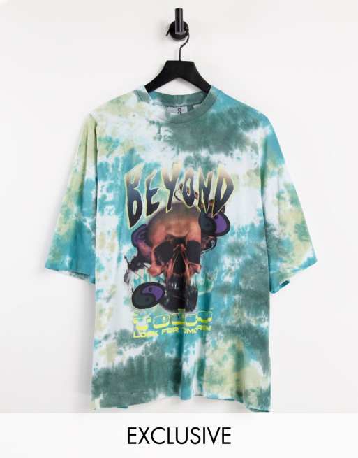 COLLUSION - Oversized T-shirt met doodshoofdprint in tie-dye