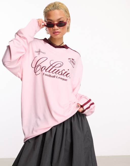 COLLUSION - Oversized voetbalshirt met lange mouwen en logo in roze