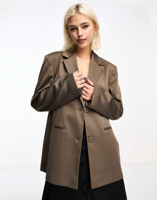COLLUSION - Oversized wollen blazer met zakken in donkerkaki