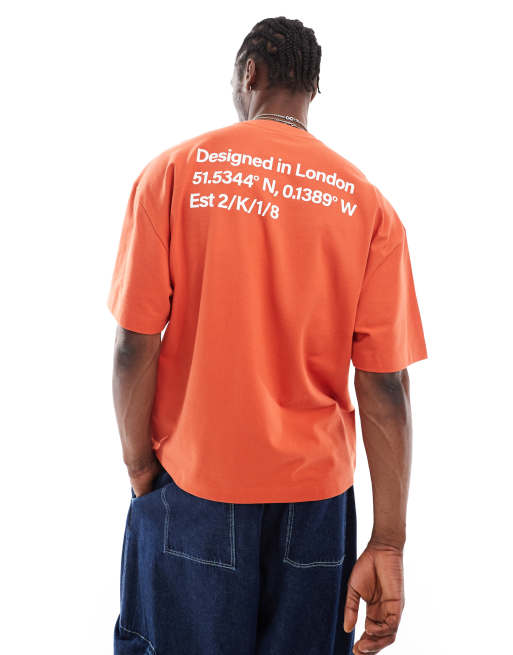 COLLUSION - Piqué T-shirt met print van coördinaten in rood