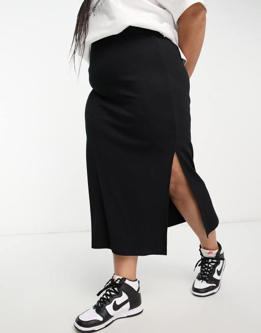 COLLUSION Plus - Geribbelde maxirok in zwart
