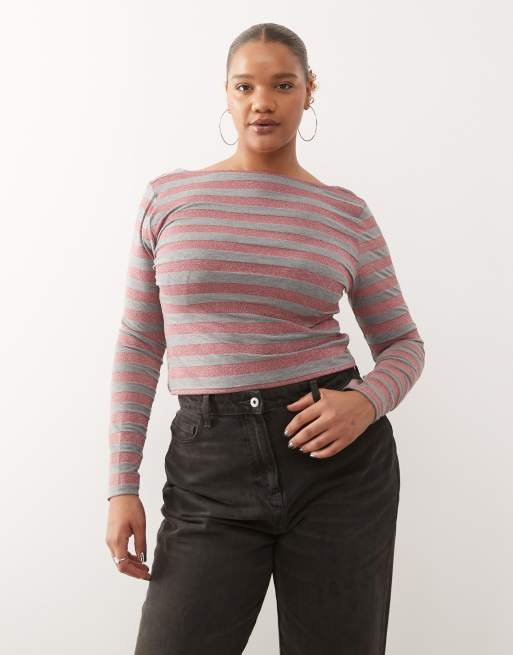 COLLUSION Plus - Gestreepte top met rechte hals in roze glitter