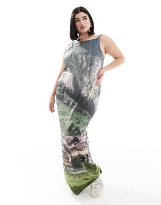 COLLUSION Plus - Maxi-hemdjurk met landschapsprint in multi