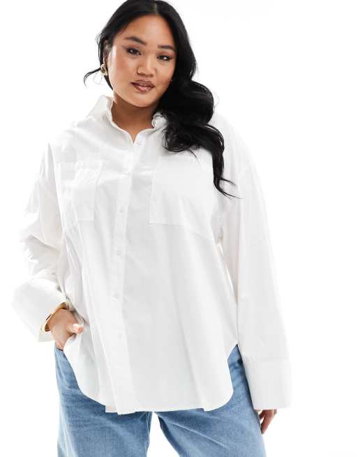 COLLUSION Plus - Oversized poplin overhemd in wit