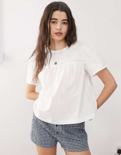 COLLUSION - Poplin top met broderie in wit