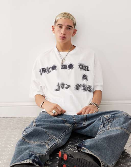 COLLUSION - Recht cropped T-shirt met print in ecru