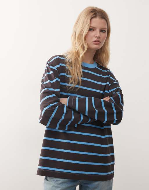 COLLUSION - Recht gestreept T-shirt met lange mouwen in blauw