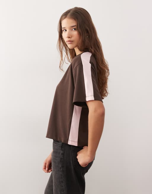 COLLUSION - Recht T-shirt met contrast in bruin en roze