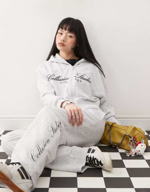 COLLUSION - Rechte cropped hoodie met logo, deel van co-ord set
