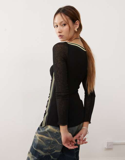 COLLUSION - Retro top van mesh met lange mouwen, laagjes en geel contrast in zwart