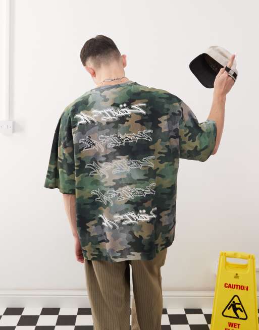 COLLUSION - Ruimvallend T-shirt met grafische graffiti- en camouflageprint