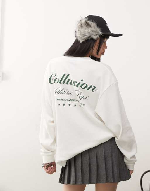 COLLUSION - Ruimvallend T-shirt met lange mouwen, wafelstructuur en grafische print in ecru