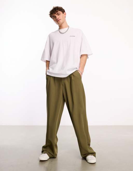 COLLUSION - Ruimvallende elegante pantalon met wijde pijpen in olijfgroen