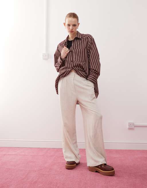 COLLUSION - Ruimvallende geweven broek met linnen in stone