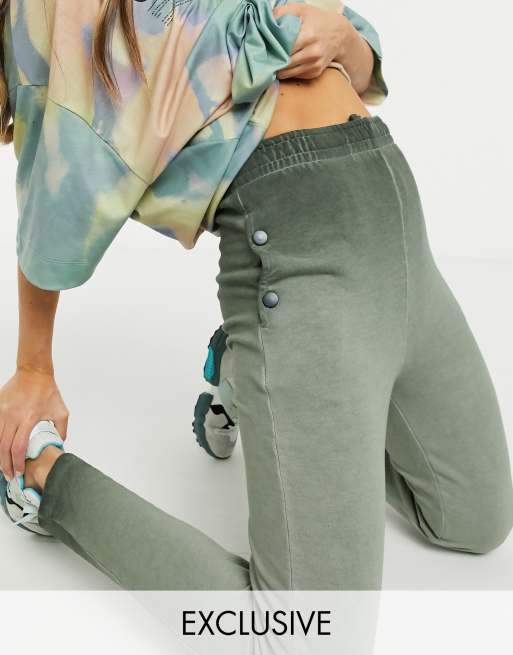 COLLUSION - Skinny joggingbroek met drukknopen en kaki wassing