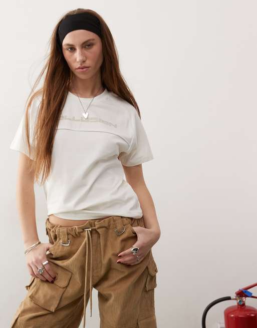 COLLUSION - Sportieve aansluitende top met biezen in ecru