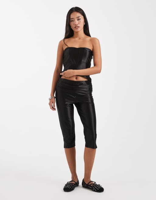COLLUSION - Stretch-satijnen capri broek met lage taille in zwart, deel van co-ord set