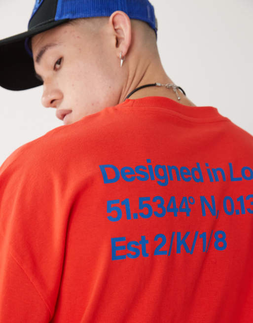 COLLUSION - T-shirt met blauwe coördinaten-print in rood