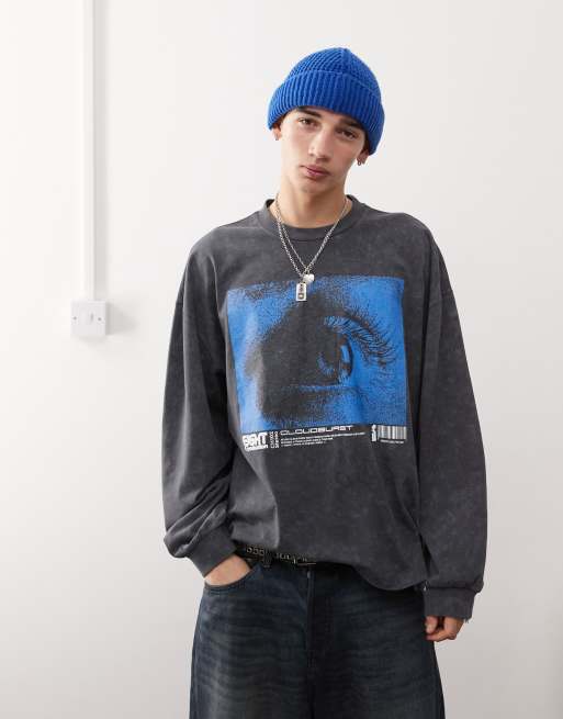 COLLUSION - T-shirt met lange mouwen en grafische oogprint in grijs