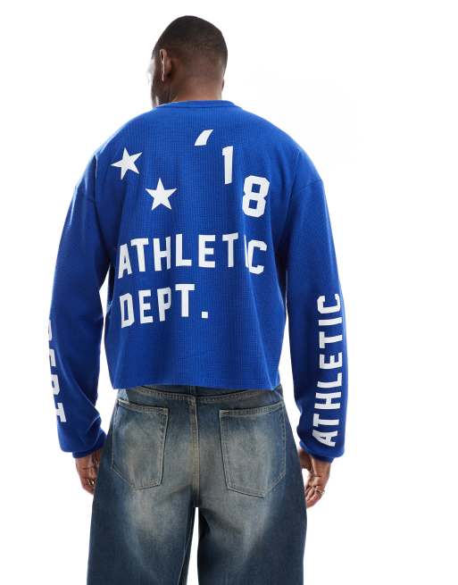 COLLUSION - T-shirt met skaterpasvorm, lange mouwen en atletische print in blauw