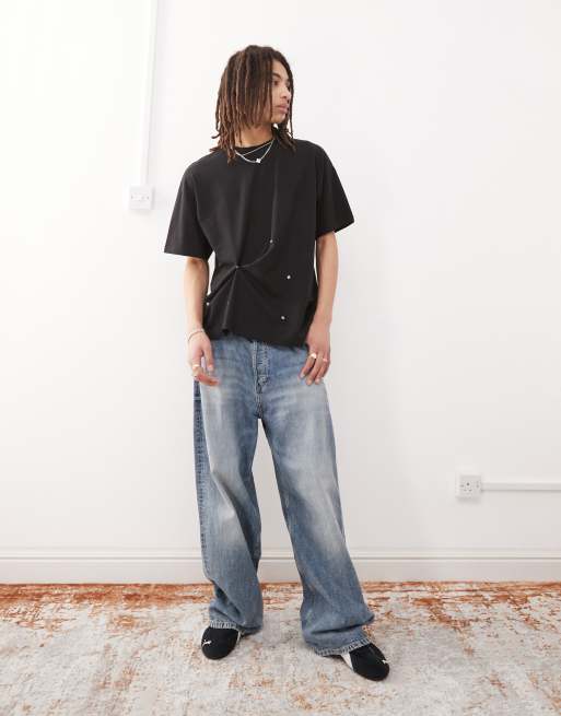 COLLUSION - T-shirt met verstelbare drukknopen in zwart