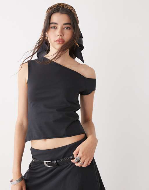 COLLUSION - Top met blote schouders en korte mouwen in zwart