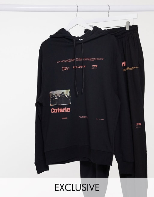 COLLUSION - Uniseks oversized hoodie en joggingbroek met print in zwart
