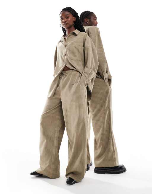 COLLUSION Unisex - Broek met ballonpijpen en krijtstreep met print in bruin, deel van co-ord set