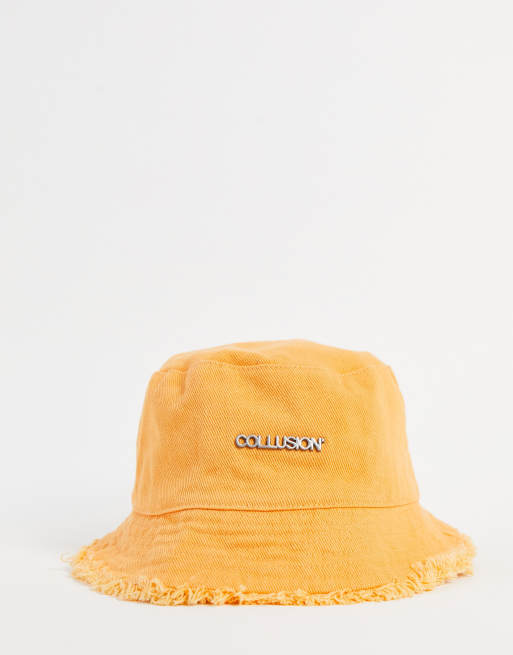 COLLUSION Unisex - Bucket hat met logo en gerafelde zoom