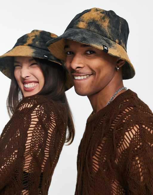 COLLUSION Unisex - Bucket hat van corduroy in bleekwassing