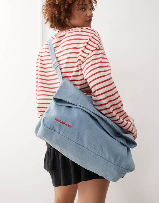 COLLUSION Unisex - Denim schoudertas in mid-wash blauw