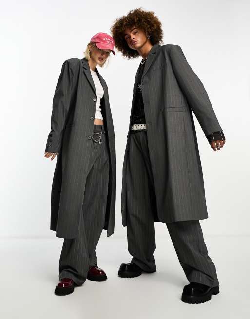 COLLUSION Unisex - Elegante lange blazer in grijs met krijtstreep, deel van co-ord set