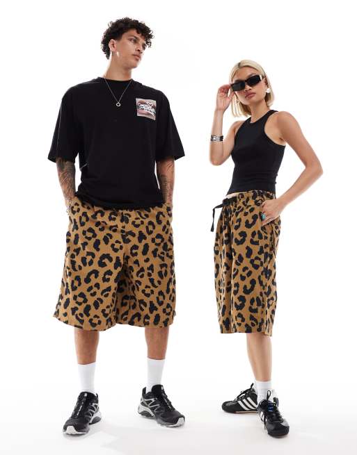 COLLUSION Unisex - Lange short met luipaardprint met wassing