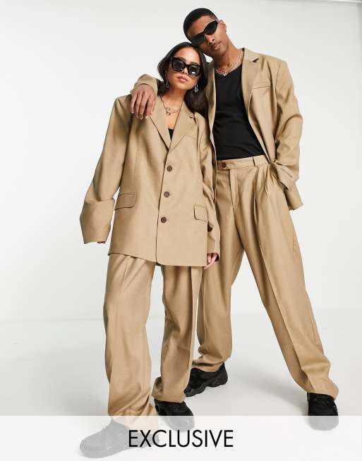 COLLUSION Unisex - Oversized dad blazer in camel, deel van co-ord set
