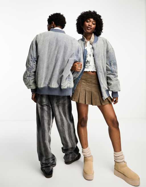 COLLUSION Unisex - Oversized distressed bomberjack met wassing in denim blauw